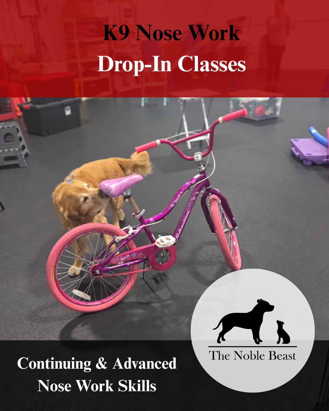 - Your dog! On a well fitted collar or harness attached to a 4-6 ft leash. You may consider a specific harness just for scentwork class but don’t need to rush out and buy one right away. We can discuss this more in class.
